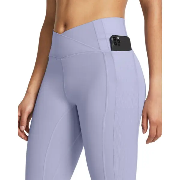 Γυναικείο cropped κολάν σε μωβ χρώμα της εταιρίας Under Armour, με 7/8 μήκος που σταματά πάνω από τον αστράγαλο. Τεχνολογία Fast Drying που βοηθάει στην γρήγορη απομάκρυνση του ιδρώτα από το δέρμα, εξασφαλίζοντας στεγνή αίσθηση και άνετη εφαρμογή.